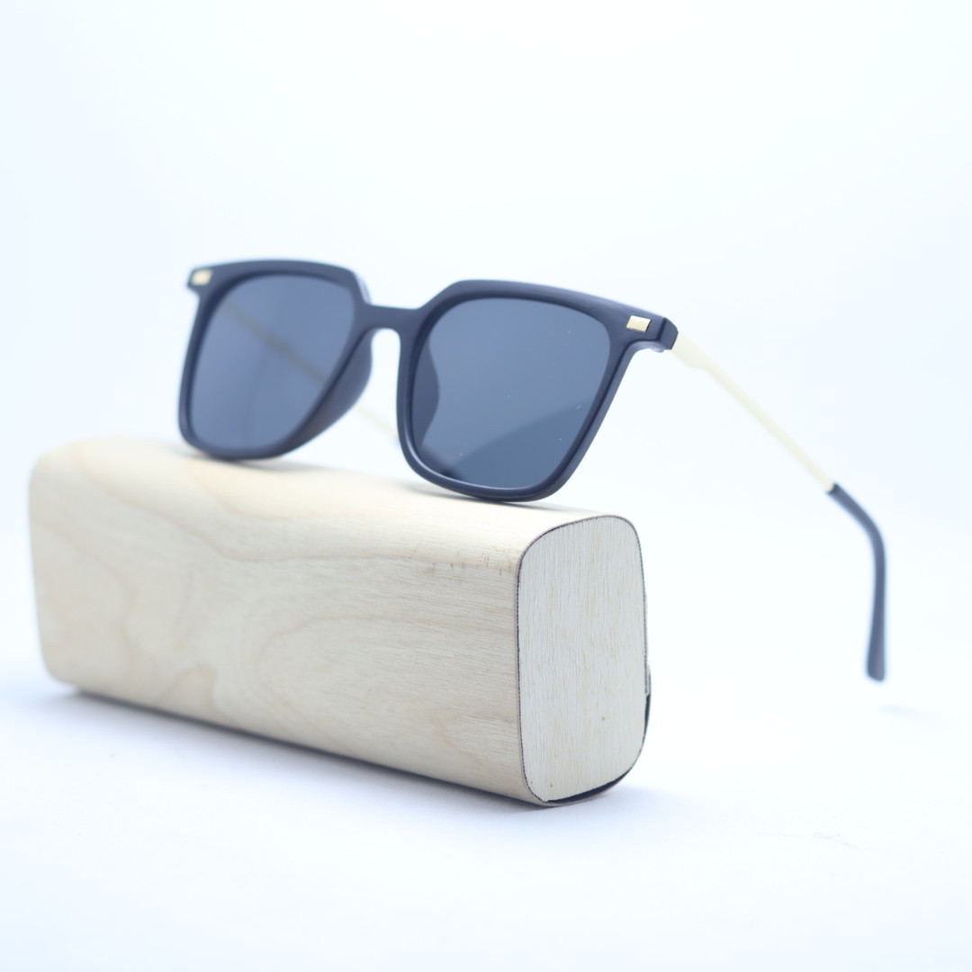 ZOO Shades Wooden And Metal Frame 715A Square Black Sunglasses For Women And Men