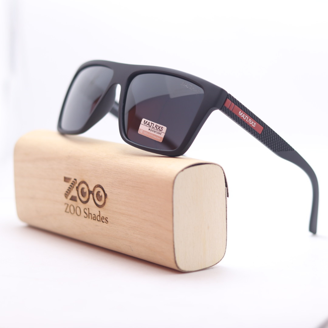 Polarized Matlrxs Matt Black Side Red Square Sunglasses