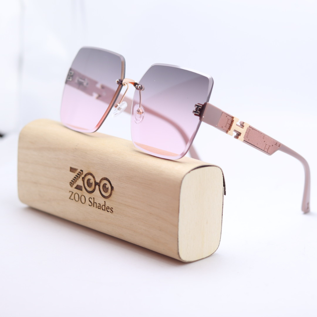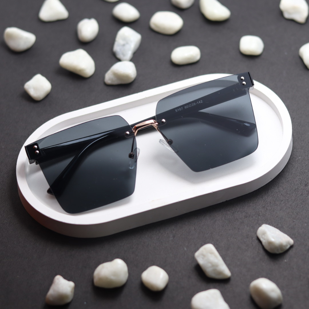 ZOO Shades Oversized Rimless Square Black Golden Frame 306A Sunglasses For Women